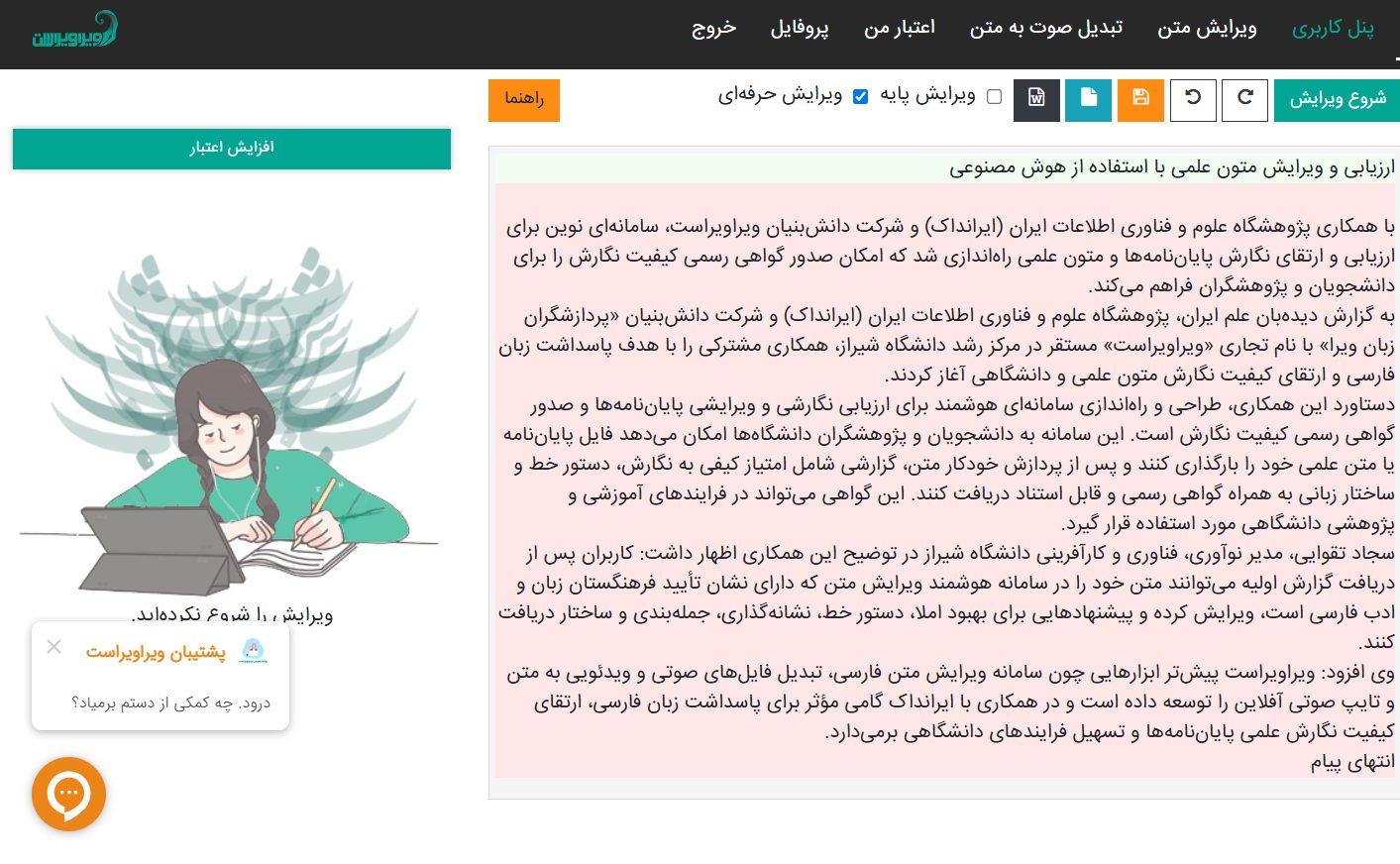 با همکاری پژوهشگاه علوم و فناوری اطلاعات ایران (ایرانداک) و شرکت دانشبنیان ویراویراست، سامانهای نوین برای ارزیابی و ارتقای نگارش پایاننامهها و متون علمی راهاندازی شد که امکان صدور گواهی رسمی کیفیت نگارش را برای دانشجویان و پژوهشگران فراهم میکند.
