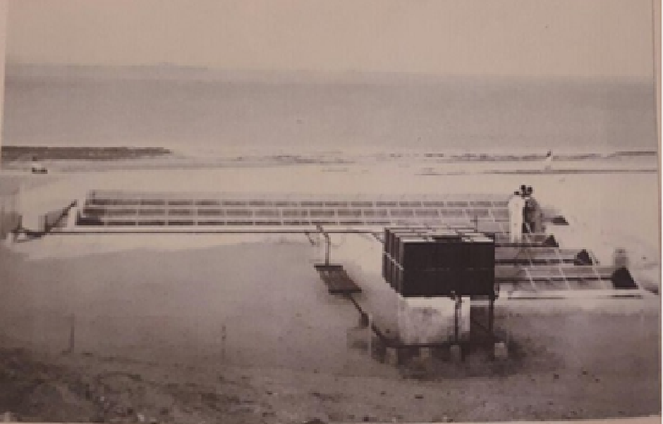 پروژه آب‌شیرین‌کن خورشیدی (سیمانی و فلزی) که انستیتو در سال ۱۳۴۹ در جزیرۀ هنگام پیاده نموده است. ظرفیت حدود ۵۰۰ لیتر آب شیرین در روز