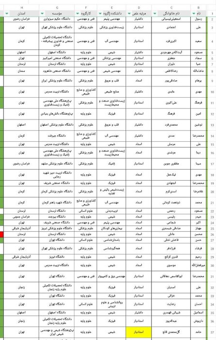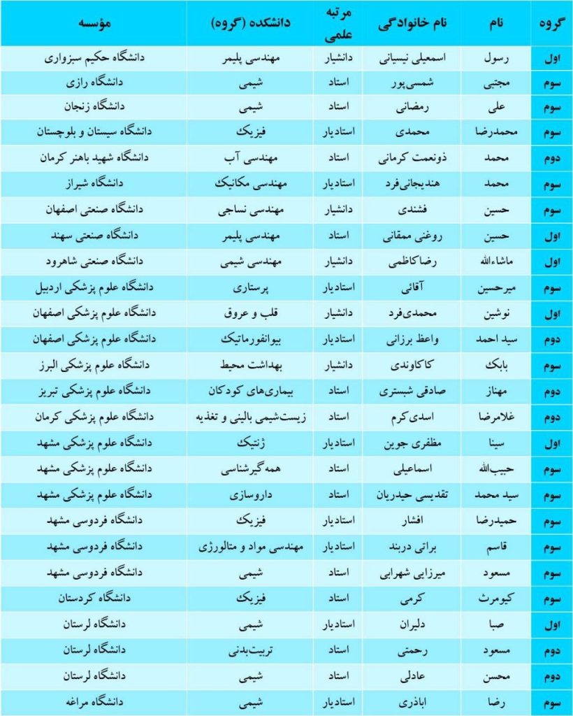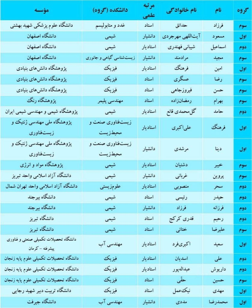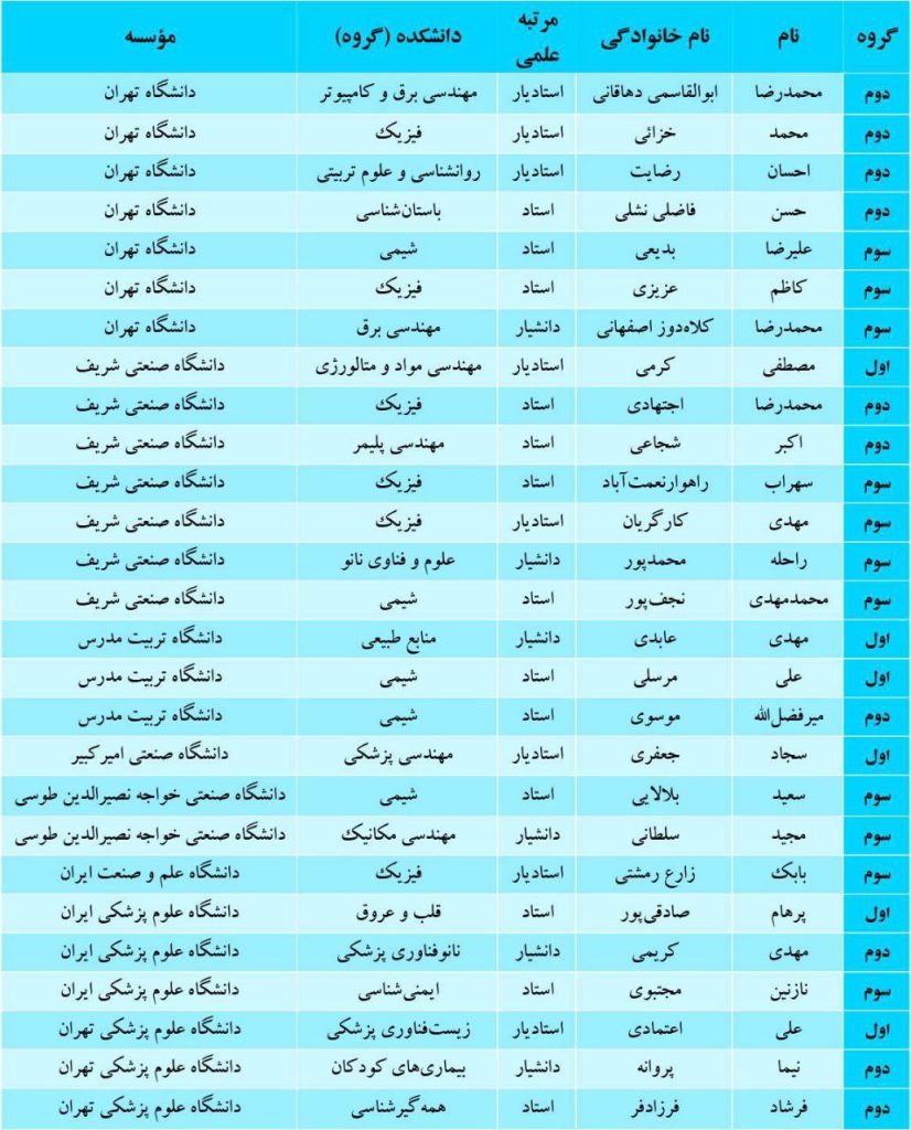 اسامی برگزیدگان سرآمدان علمی ایران به شرح زیر است: